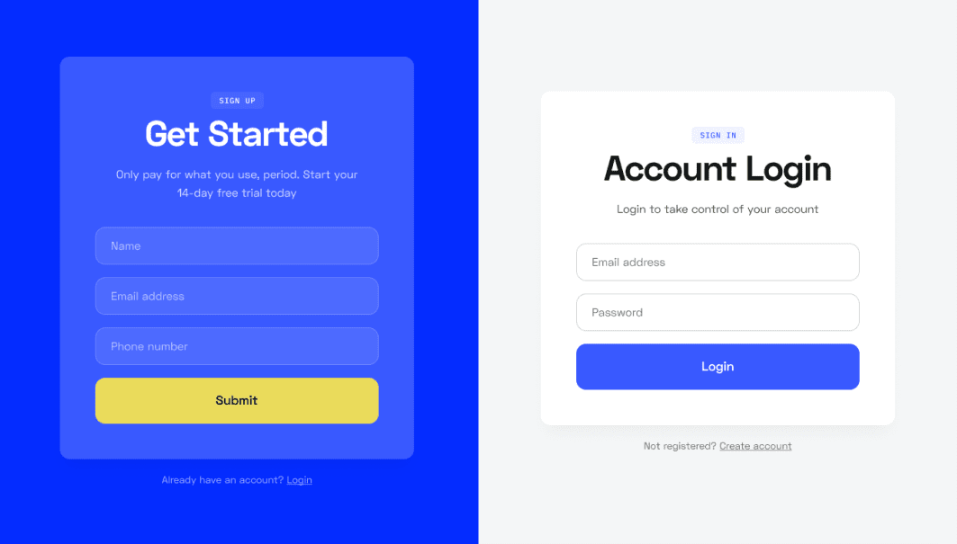 The template does not include any code for signing up, logging in, creating an account, or forgot a password.